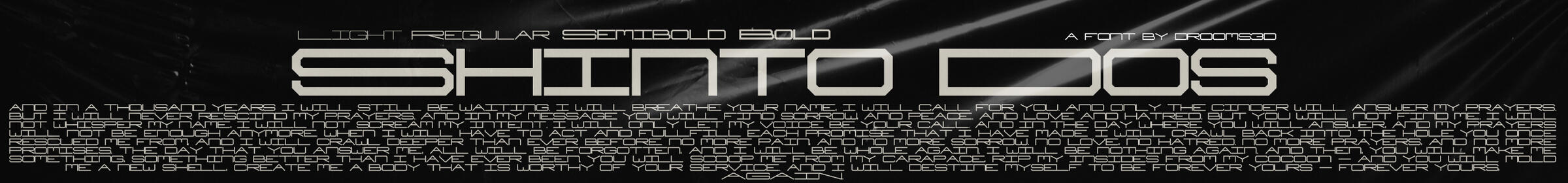 A Harbingers death. The totem of a fallen crustacean. Shinto Dos helps you celebrate the machine, make impactful monospaced impressions on the emperor, and gives you the cords to revive the great mind once again. The civilisations have gone: Shinto Dos has stayed.Shinto Dos features 4 different Fontweights.